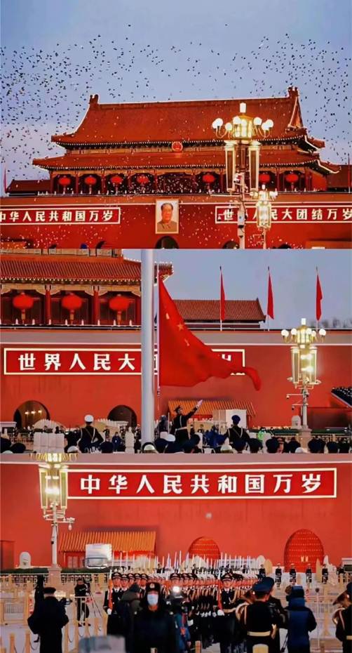 目光所至皆为华夏,五星闪耀皆为信仰。悠悠七十五载,东方巨龙,乘风破浪,启盛世华章。忆往昔,一代代中国共产党人团结带领中国人民,筚路蓝缕奠基立业,艰苦奋斗不懈努力,创造一个个彪炳史册的人间奇迹,书写下震古烁今的壮丽诗篇;看今朝,国歌奏响,国旗飘扬,山河锦绣,百舸争流,泱泱中华屹立于世界东方;展未来,愿以寸心寄华夏,吾辈青年,正意气风发!