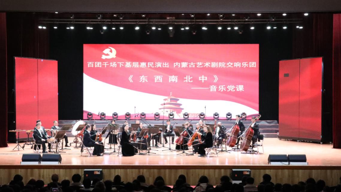 20日上午,内蒙古艺术剧院交响乐团以“音乐+党课”的形式举办《东西南北中》主题音乐党课,深情讴歌党的奋斗历程,让现场党员干部师生在艺术熏陶中接受精神洗礼,感悟信仰光辉。音乐党课在《复兴的力量》豪迈雄壮的旋律中拉开序幕,以《八月桂花遍地开》《花儿与少年》《凤阳花鼓》《山丹丹花开红艳艳》《编花篮》《打起手鼓唱起歌》《庆丰收》《步步高》《阿佤人民唱新歌》《美丽的草原我的家》《勇敢的鄂伦春》《各族人民心连心》《爱我中华》《歌唱祖国》等一首首经典曲目,串联起中国共产党带领全国各族人民团结奋斗、奋力实现中华民族伟大复兴中国梦的一幕幕动人画卷,直观呈现了在党的领导下,中国社会发生翻天覆地的变化,重温党在不同历史阶段的使命与担当。音乐党课在全体大合唱《歌唱祖国》中落下帷幕。