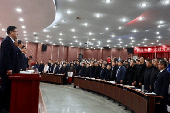 会议号召,全校上下要把会议作为推动学校教学工作的新起点,准确把握高等教育新方向,持续深化教育教学改革,全面提高人才培养质量,奋力实现申硕目标,为建设有特色高水平的地方本科师范院校作出更大贡献。