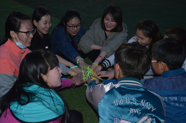 活动以学生手握荧光棒微长跑的形式展开,参与学生达150人,共分成15个团队,环绕操场进行荧光夜跑。比赛共设四个站点进行趣味互动,操场西侧踢毽子,东侧爆气球,北侧寻找荧光棒,最后在西南侧进行团队口号表演、颁奖仪式和合影留念。
