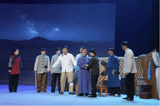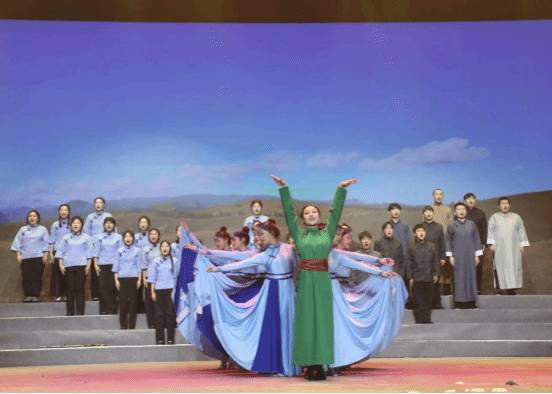 舞台上,演员们身姿矫健优美,舞步轻盈灵动,通过极具感染力的肢体语言,将角色的喜怒哀乐展现得淋漓尽致;演员们嗓音嘹亮圆润,情感充沛真挚,用一首首动人的歌曲为剧情增色添彩,每一个音符都仿佛直抵人心,传递着故事中的悲欢离合。该剧通过丰富的歌舞元素和演员们的精彩演出,演绎了一个个智慧而又勇敢的人物形象,生动诠释了共产党员的坚定信仰,深刻反映了军民鱼水情的深刻内涵和草原母亲的伟大胸怀与无私奉献精神。