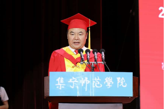 周建华代表学校,向圆满完成学业的3796名毕业生表示热烈的祝贺!向为同学们的成长付出辛勤汗水的教职工和家长们致以崇高敬意和衷心感谢!他希望同学们在即将开启人生新篇章之时,带着师长的嘱托,带着青春的憧憬,带上远行的“锦囊”。一是厚植家国情怀,做志存高远的有为青年;二是勇立时代潮头,做锐意进取的奋斗青年;三是磨炼过硬本领,做面向未来的智慧青年。希望同学们带着集师熔铸于灵魂深处的精神烙印,用赤子之心培树家国情怀,将理想抱负化作奋进动力,把知识智慧化为创新实践,在中国式现代化的伟大征程中书写新时代集师人的新传奇,谱写新时代强国有我新荣光!