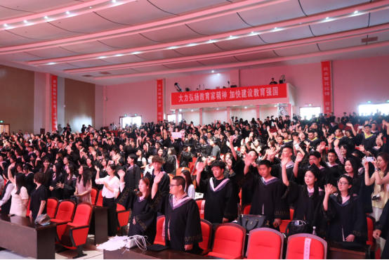 今朝惜别,未来可期。全场师生共同唱响校歌《桃李满天下》,以悠扬婉转的旋律表达对母校的祝福和热爱,凝聚砥砺前行的力量,毕业典礼圆满礼成。