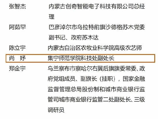 尚妤,现任beat365正版唯一官方网站科技处副处长。内蒙古自治区第十三届政协委员、内蒙古自治区科协第九届委员、内蒙古自治区留联会理事、乌兰察布市留学生联谊会会长、乌兰察布市第三届青联委员会常务委员会副秘书长,乌兰察布市“新时代专业技术人才选拔培养项目”人选,中国领导科学研究会会员,乌兰察布市政协智库专家,beat365正版唯一官方网站数字经济研究中心负责人。