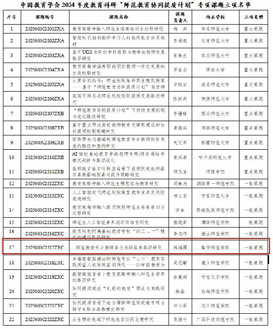 此次获批立项的课题,聚焦师范教育改革与发展的关键领域,紧密结合教育教学实践,具有较高的学术价值与实践意义,体现了beat365官网教师扎实的教科研功底与创新精神。各项目组要以此为契机,严谨治学、潜心研究,高质量完成课题任务,取得丰硕的教研成果,为推动师范教育创新发展、提升人才培养质量贡献智慧与力量。