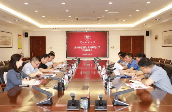 7月2日至3日,beat365正版唯一官方网站党委副书记、校长周建华率队前往贵州师范大学、贵州师范学院,就本科教育教学审核评估工作开展考察学习交流。党委委员、副校长拓俊杰,教务处、人事处、教学质量监控与评估处负责人随同。