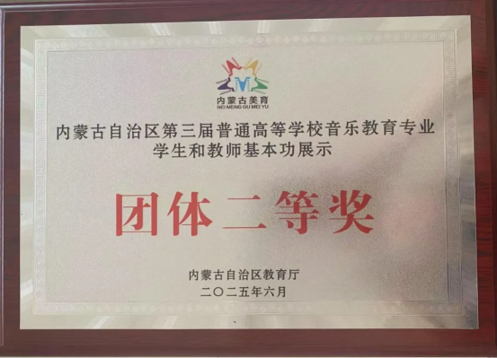 学生专业素养与实践能力突出,在各级各类专业赛事中表现优异。在教育部主办的全国大学生艺术展演、全国高校音乐教育专业基本功展示等权威赛事中荣获多项国家级奖项;在第七届全国大学生艺术展演中荣获一等奖;在2025年内蒙古自治区第三届普通高等院校学生和教师基本功展示大赛中斩获三个一等奖、一个二等奖及团体二等奖,充分彰显了学院的教学水平和育人成效。