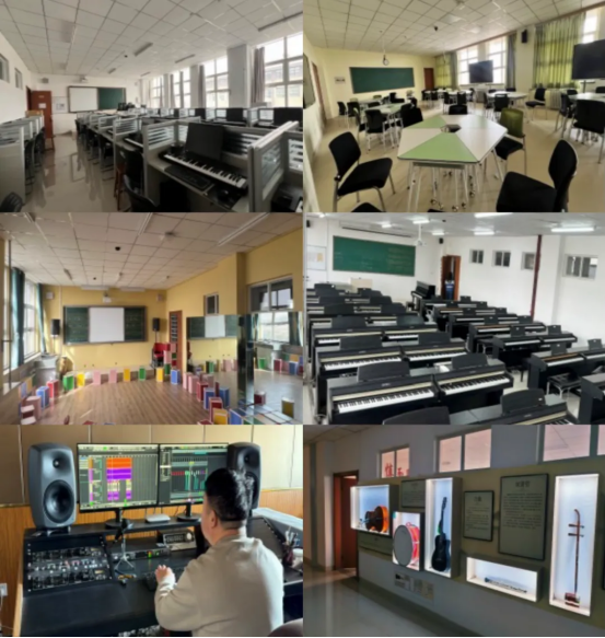 学院现使用的白海校区音乐教学楼共6层,建筑面积5400平方米,其中实践实训室面积2336平方米。教学科研设备仪器总值近500万元,为教学与科研工作提供了坚实的硬件支撑。
