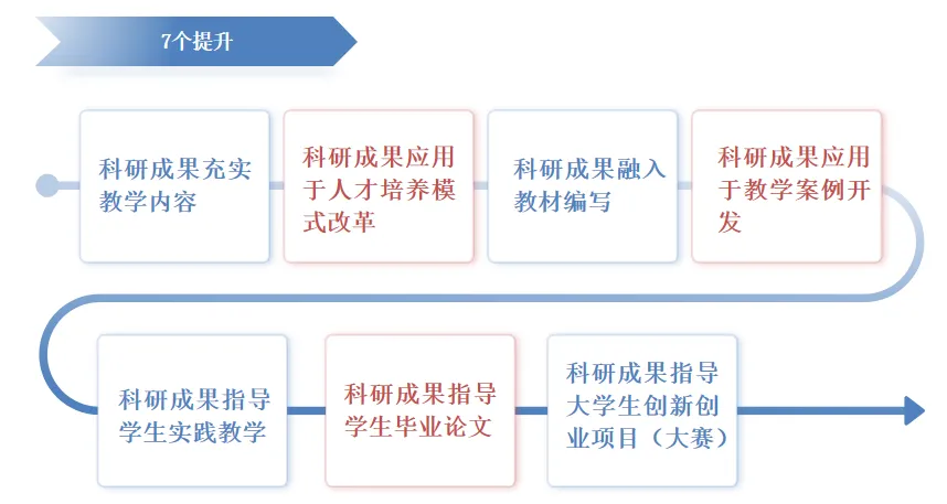 学院围绕学科发展需求,努力实践科研工作“七个提升”原则,即:科研成果充实教学内容、科研成果应用于人才培养模式改革、科研成果融入教材编写、科研成果应用于教学案例开发、科研成果指导学生实践教学、科研成果指导学生毕业论文、科研成果指导大学生创新创业项目(大赛)等,创新激励机制,充分激发师生协同创新活力,实现了“科研带教学、教学促科研”的良性循环。