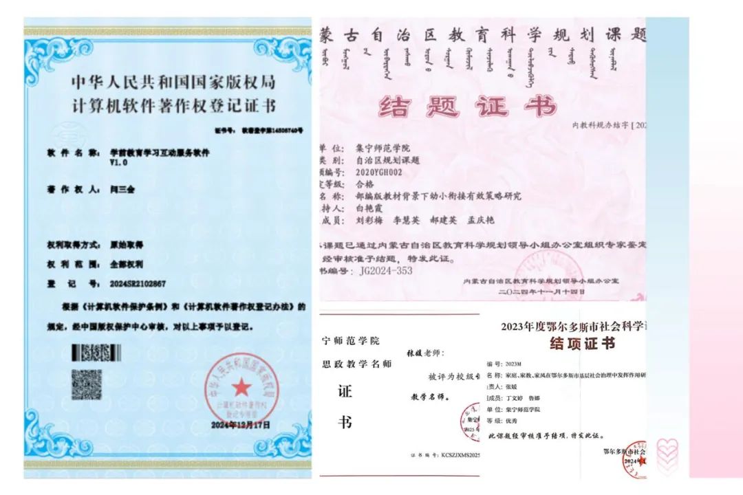 近年来,学院先后荣获乌兰察布市先进基层党组织、全区普通高校大学生心理健康教育工作先进单位、全区幼儿教育先进单位、乌兰察布市巾帼建功先进集体等荣誉称号。