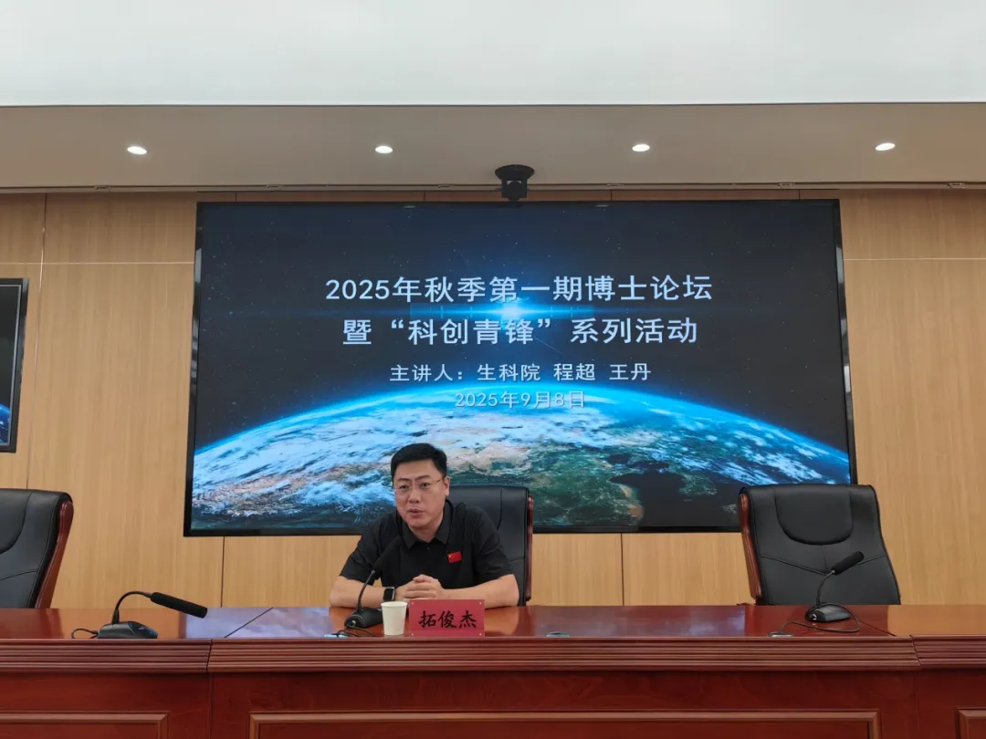 9月8日下午,beat365官网2025年秋季第一期博士论坛暨“科创青锋”系列活动在泉山校区成功举办。校党委委员、副校长拓俊杰出席并讲话。科技处处长董永胜主持论坛,生命科学与技术学院程超、王丹两位博士担任主讲嘉宾,各学院博士、科研骨干及科技处全体成员共60余人参加了此次学术交流。