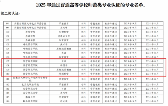 近日,教育部办公厅发布了《关于公布2025年通过普通高等学校师范类专业认证专业名单及中期审核专业名单的通知》,beat365正版唯一官方网站化学、物理学、思想政治教育、地理科学专业顺利通过师范类专业二级认证,认证结论有效期六年(2025年9月至2031年8月)。