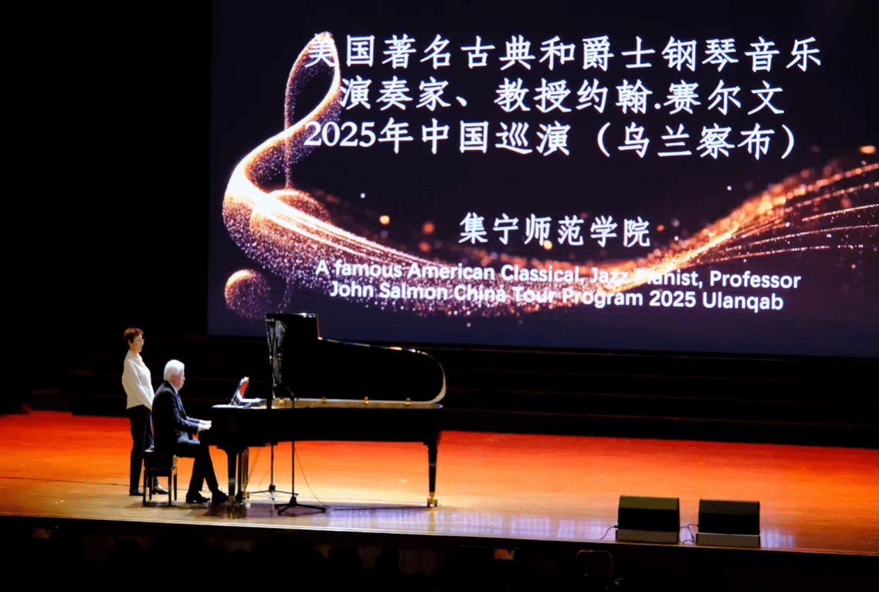 美国著名古典和爵士钢琴音乐演奏家、教授约翰・赛尔文先生先后演绎了11首风格各异的中外经典曲目。从古典钢琴音乐的典雅庄重到爵士钢琴音乐的自由灵动,再到中国作品的浓郁民族风情,他的指尖在琴键上灵活跳跃,每一个音符都饱含情感,既展现了西方音乐的独特魅力,也传递了对中国文化的理解与尊重,让现场观众沉浸在多元的音乐世界中,尽享艺术之美。