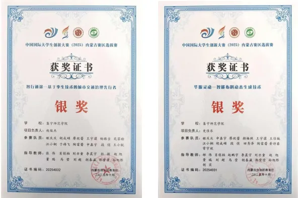 为深化创新创业教育改革,经济与管理学院创客协同创新中心组织团队参加2025年中国国际大学生创新大赛。beat365官网学生表现出色,实现产业赛道零突破,“智行通途”、“华服灵动”两个项目获内蒙古赛区银奖,其中“华服灵动”项目还入选国赛,创历史最佳成绩。