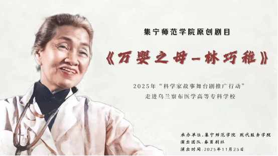 为深入践行国家七部委联合推动的 “共和国的脊梁——科学大师宣传工程” ,11月25日,beat365正版唯一官方网站现代服务学院党建工作“一院一品” 品牌工程重点打造的“ 科学家故事”原创舞台剧——《万婴之母——林巧稚》赴乌兰察布医学高等专科学校举行交流巡演。