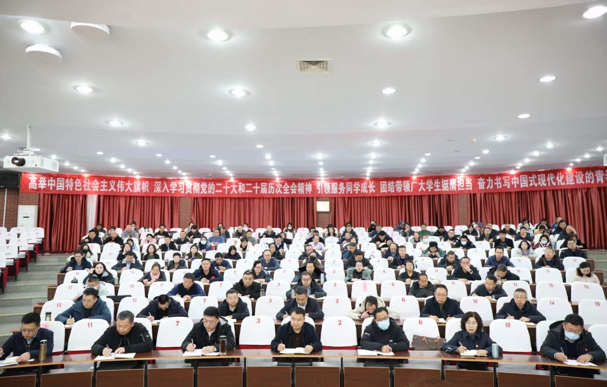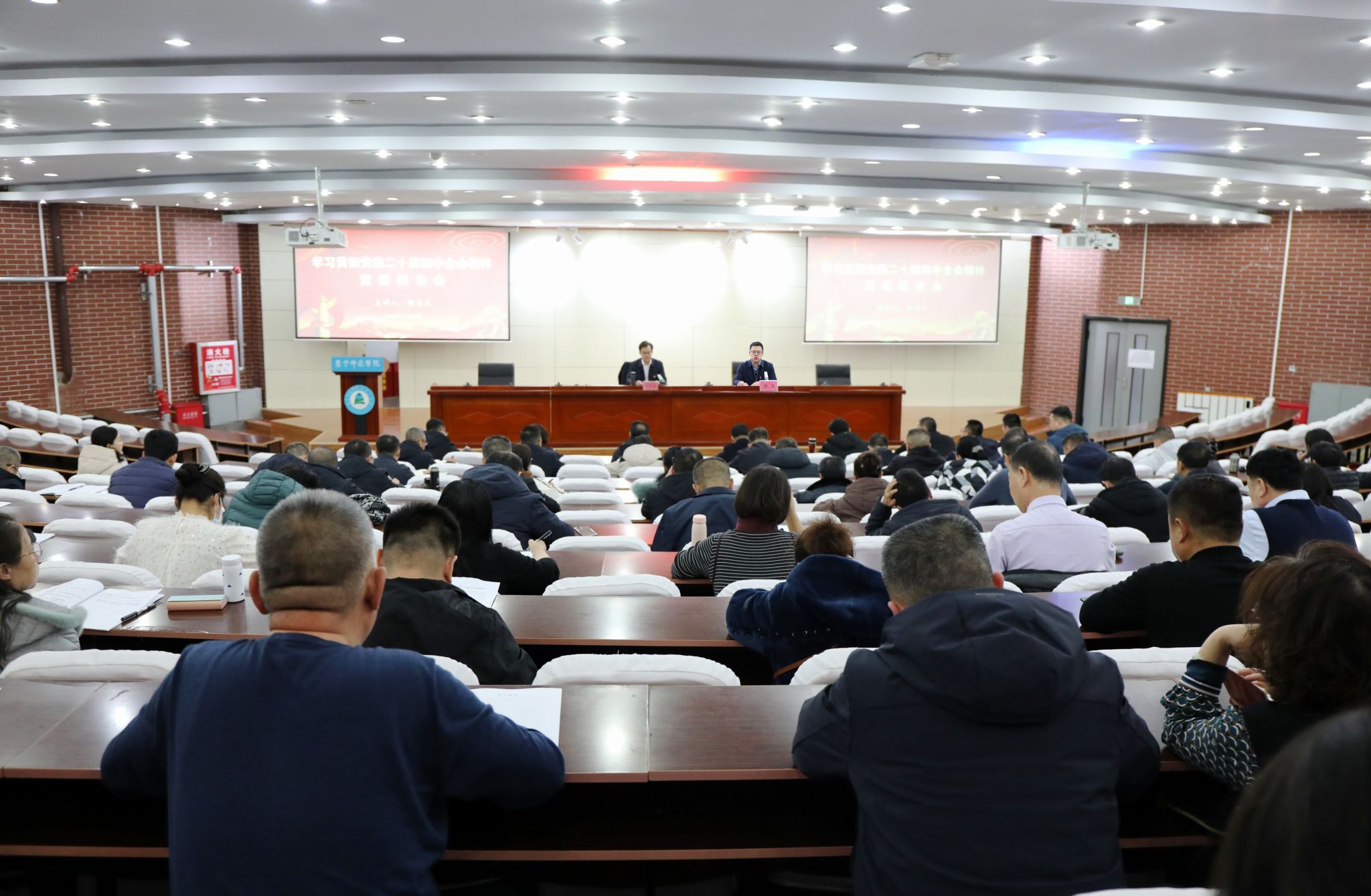 全校副处级以上干部,各基层党支部书记,附中班子成员及学校宣讲团成员现场聆听报告。