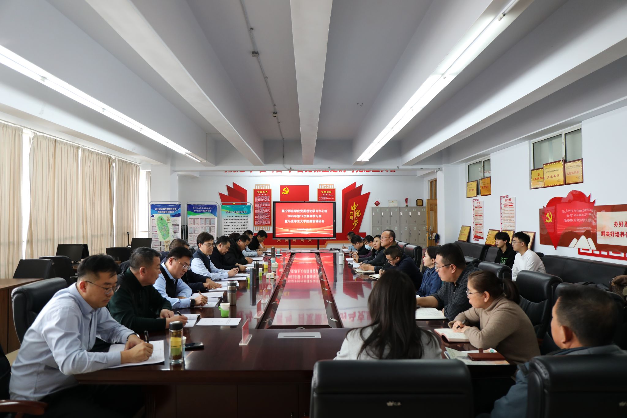 2025年12月11日下午,beat365官网党委理论学习中心组(扩大)2025年度第19次集体学习会暨马克思主义学院建设调研会召开。会议聚焦马克思主义学院建设、思想政治理论课改革创新及铸牢中华民族共同体意识等关键工作,通过集中学习、专题汇报、交流研讨凝聚共识,推动立德树人根本任务落地见效。全体校领导、党委委员,马克思主义学院班子成员、环节干部、系主任、教研室主任及师生代表参加会议。校党委书记、党委理论学习中心组组长张宝成主持会议并讲话。