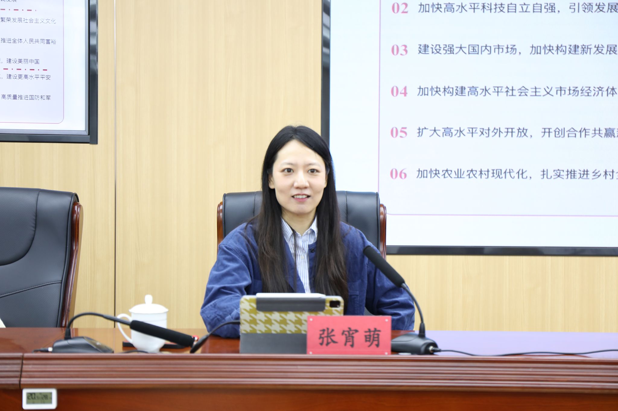 本次会议特邀乌兰察布市宣讲团成员、内蒙古党校民族理论与政策教研部副教授张宵萌作专题宣讲。张宵萌以“在接续奋斗中谱写中国式现代化新篇章——深学细悟党的二十届四中全会精神”为题,重点围绕党的二十届四中全会的重要地位、主要内容和实践要求三大板块,深入阐释了全会在“十四五”规划即将收官、“十五五”规划即将启幕关键节点的历史意义,详解了全会“承前启后推进中国式现代化、为中长期发展定向导航、为世界发展注入积极因素”的核心价值,重点解读了“高质量发展”“高水平科技自立自强”“全体人民共同富裕”等核心任务,并结合教育领域实际,对全会提出的“办好人民满意的教育”“推进教育公平与质量提升”等部署进行了针对性阐释,为学校落实全会精神提供了明确指引。