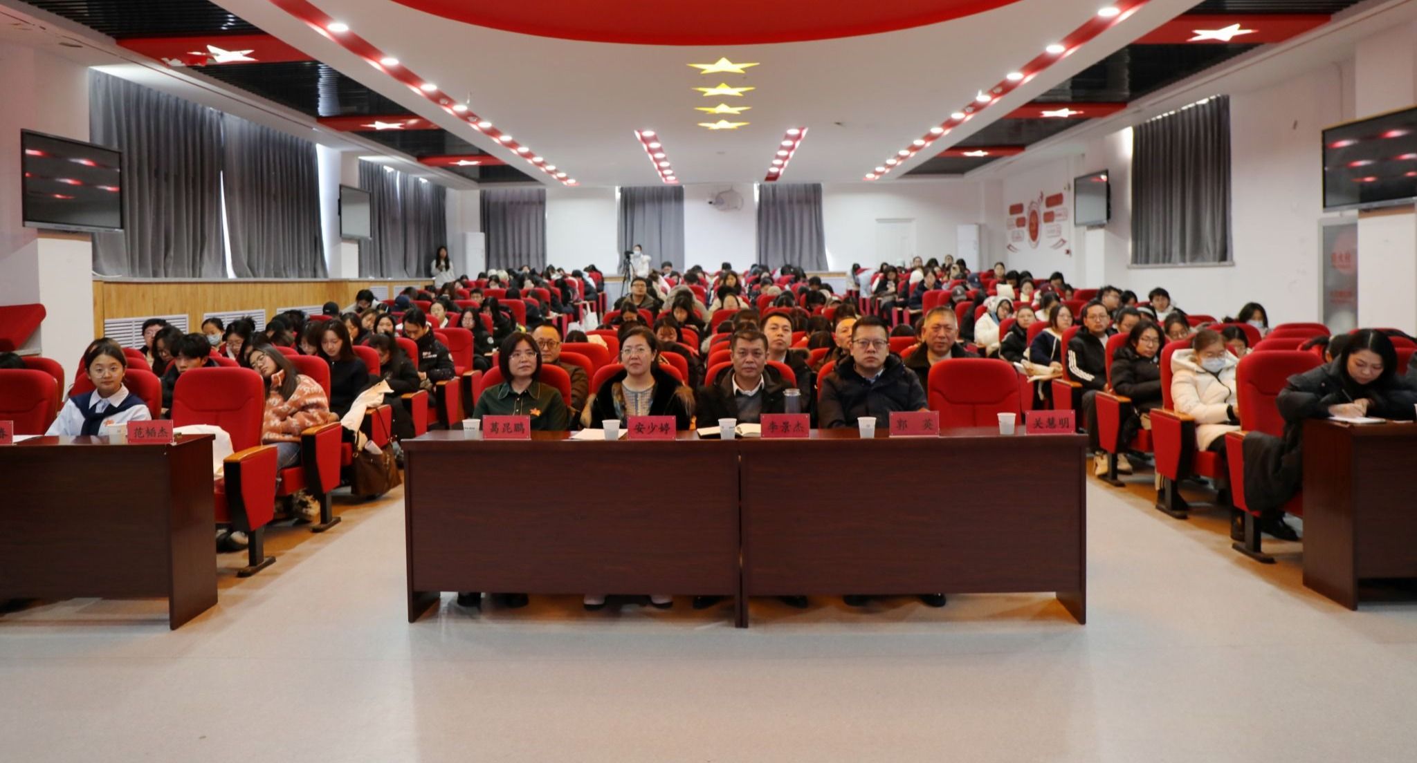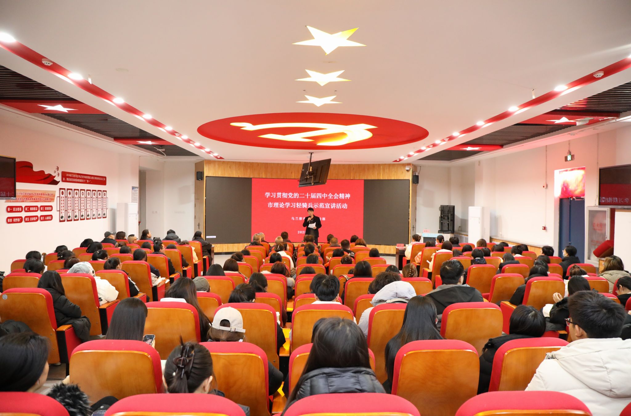 为深入学习宣传贯彻党的二十届四中全会精神,推动全会精神在校园落地生根、入脑入心,12月19日上午,乌兰察布市“理论学习轻骑兵”示范宣讲团走进beat365正版唯一官方网站开展专题宣讲活动。校党委副书记李景杰,党委委员、宣传部部长郭英,乌兰察布市讲师团团长安少婷,各二级学院分管学生工作副书记及党员、学生代表参加了此次宣讲会。活动由党委宣传部副部长田博主持。