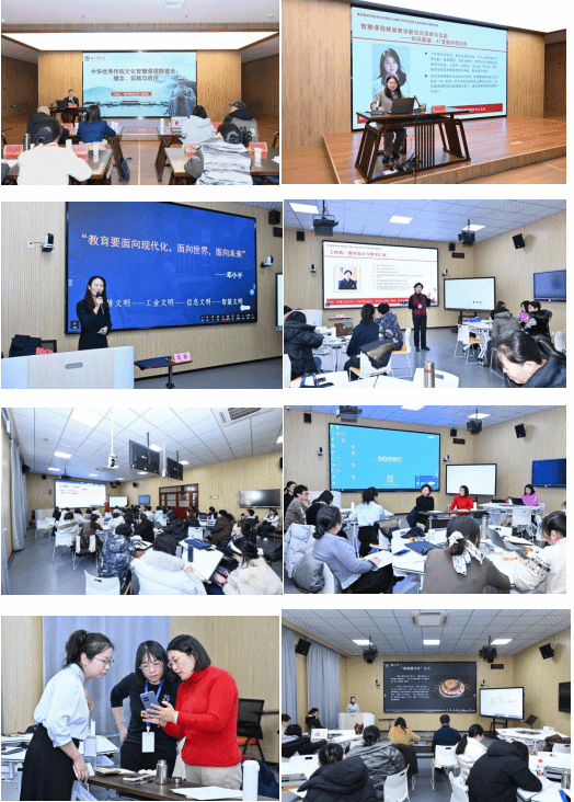 本次培训紧扣“智教创新”核心主题,构建起理论学习、案例示范、实践操作、现场教学兼具的多元化课程体系,内容丰富且针对性强。多位专家学者带来高水准专题报告:郑涛教授深入剖析课程思政融合路径与实践方法,崔丙群教授分享教学创新大赛国赛备赛经验,张慧伦教授的青教赛备赛分享与赵倩老师的名师示范课为学员提供实用教学指导,成积春教授为传统文化与现代教学的深度融合提供了新思路,郝旭瑞老师展现知识图谱、AI 智能体等前沿技术的教学应用。肖芳教授、刘芳教授主持的工作坊,助力学员实现理论向教学实践的转化。此外,培训还设置了课堂教学展示、教学创新汇报等环节,为学员搭建了交流展示的平台,促进了彼此间的经验分享与共同进步。