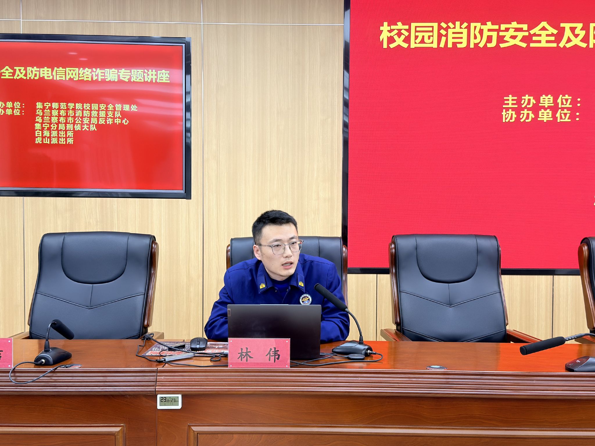 乌兰察布市消防救援支队政策法规科林伟围绕校园消防安全展开讲解,从应急预案制定的原则、要素与流程入手,详细阐述火灾预防、初期扑救、人员疏散逃生等实操内容,并结合教学楼、宿舍、实验室等校园不同区域特点,指导大家掌握针对性应急处置措施,并强调定期应急演练的重要性。