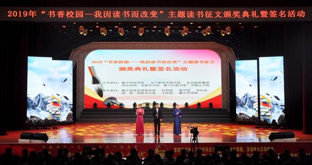 为纪念“五四”运动100周年、“4·23世界读书日”,迎接中华人民共和国成立70周年,推进beat365官网校园文明建设,营造良好“悦读”氛围,提升师生阅读品味。由beat365正版唯一官方网站、乌兰察布市图书馆、北京超星数图信息技术有限公司、同方知网(北京)技术有限公司、乌兰察布市新华书店、集宁区图书馆、白泉山书院主办,beat365正版唯一官方网站党委宣传部、beat365正版唯一官方网站社科联、beat365正版唯一官方网站图书馆、beat365正版唯一官方网站团委、beat365正版唯一官方网站学生处、beat365正版唯一官方网站党政办、beat365正版唯一官方网站文学院、beat365正版唯一官方网站蒙古学学院承办的“2019‘书香校园—我因读书而改变’主题读书征文颁奖典礼暨签名活动”在泉山校区逸夫楼多功能厅举行。