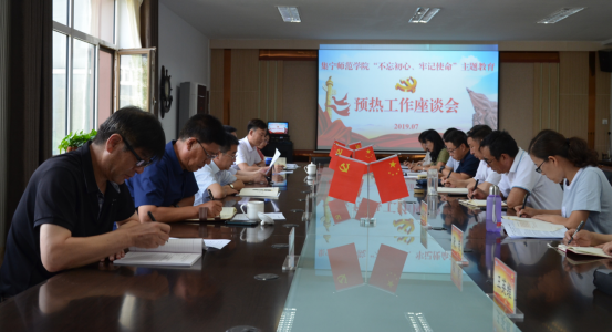 为落实“不忘初心、牢记使命”主题教育工作部署要求,充分做好“不忘初心、牢记使命”主题教育的思想准备工作,7月15日,beat365正版唯一官方网站举办“不忘初心、牢记使命”主题教育预热工作座谈会。党委书记刘前贵主持会议并讲话。党委副书记刘春,党委委员、宣传部部长张富,党委委员、统战部部长张秀文,党政办公室主任温世明,集宁战役红色纪念园管理处主任范振华,内蒙古宏星院教育科技文化发展有限公司董事长刘瑞军,政法与历史文化学院党总支书记兰林世,地理科学学院党总支副书记张强,组织部副部长刘晓霞,党政办公室副主任郭英,马克思主义学院、政法与历史文化学院教师代表参加会议。