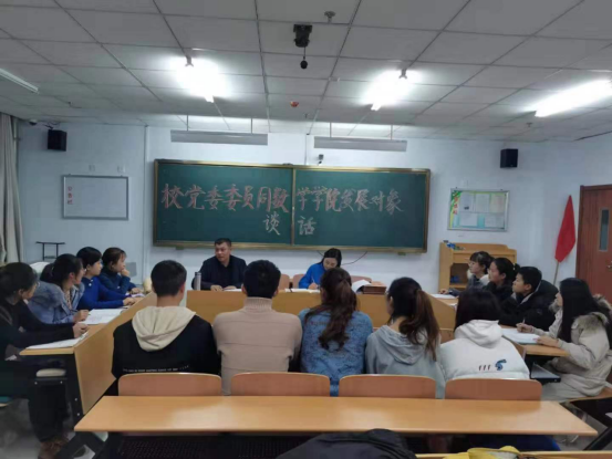 12月29日,beat365正版唯一官方网站党委委员、人事处处长李景杰与数学学院13名新发展预备党员进行谈话。数学学院党总支副书记王秀琴参加谈话。