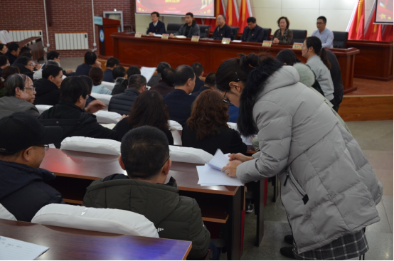 随后,指导组一行对与会人员进行了现场测评。参加测评的有:校领导、党委委员,各级党代表、人大代表、政协委员和党员群众代表以及师生代表等,共计120人。参会人员采取无记名方式认真填写了测评表。