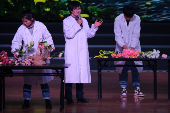 生命科学学院副院长穆俊祥致新年贺辞。园艺专业的学生进行了现场花艺表演,白雪老师就中西方插花的区别和特点进行介绍。顶岗实习、野外实习和教育实习的学生们分别进行报告,陈宇浩老师分享在丹麦奥胡斯大学的学习和感受。诗朗诵《我骄傲,我是中国人》点燃了观众的爱国热情,一首首歌曲和一段段舞蹈把晚会氛围不断推向高潮,精彩纷呈的节目赢得了观众们的阵阵掌声。