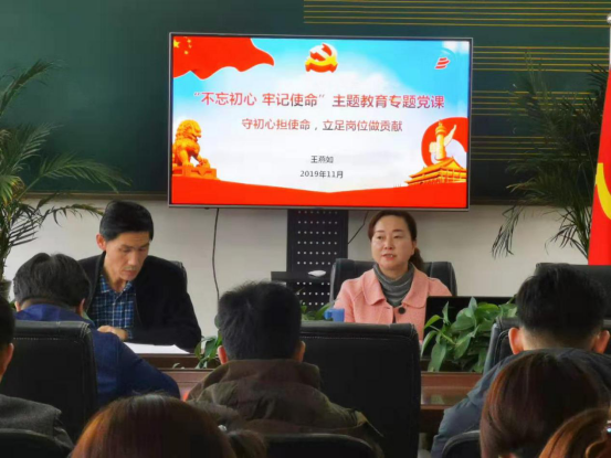 首先,王燕如重点阐述了我们党开展此次主题教育的重大意义,她指出根据不同时期党的奋斗目标、历史使命和重要任务,及时开展党内集中教育,是党的重要历史经验。开展“不忘初心、牢记使命”主题教育,是党的十九大作出的重大部署,目的就是解决党内存在的违背初心和使命的各种问题,要把全体党员的思想和行动统一到习近平新时代中国特色社会主义思想上来,步调一致朝着共同目标努力奋斗。
