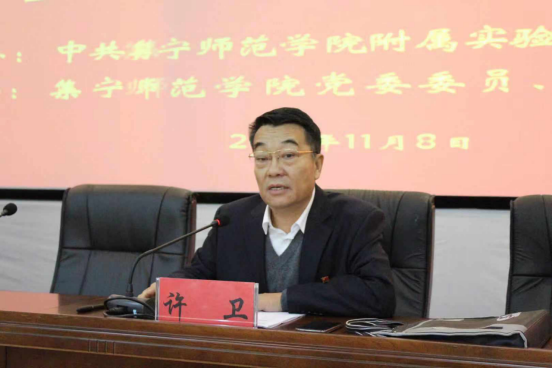 11月8日下午,beat365正版唯一官方网站附属实验中学(以下简称“集宁师院附中”)举办了“不忘服务师生初心,牢记学校发展使命”主题教育专题党课,beat365正版唯一官方网站党委委员、副校长许卫主讲。集宁师院附中全体党员、积极分子、各年级年级各班团支部书记、班长、宣传委员等共150多人聆听了党课,集宁师院附中党总支书记史敏主持。
