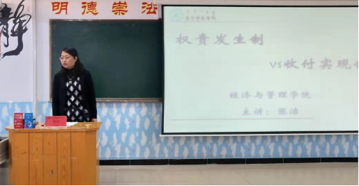 三位教师分别从礼仪规范,管理思想,会计应用等三个方面,进行了精彩的讲授。教学过程中师生密切互动,课堂氛围热烈,教学效果良好。