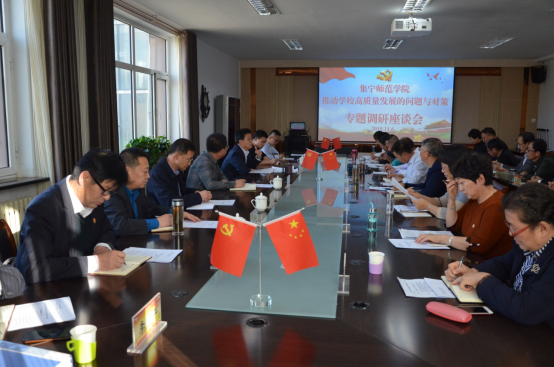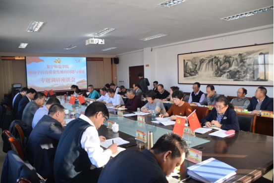 11月6日下午,beat365正版唯一官方网站党委副书记、校长朱玉东在行政楼402会议室主持召开“不忘初心、牢记使命”主题教育校长重点调研座谈会,调研课题为“推动学校高质量发展的问题与对策”。自治区党委第一巡回指导组联络员张得伟,成员邓李富、李梦竹,乌兰察布市委督查室调研员石劲柏,乌兰察布市委主题教育领导小组办公室干部德格吉出席指导。beat365官网各二级学院、察哈尔文化研究院的院长参加了座谈会,党政办公室、宣传部、人事处、科技处、机关党委、教务处等部门负责人陪同调研。