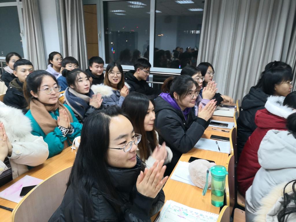 生命科学学院曹兴明、孙登高和2017级生物技术1班学生化学与化工学院李荣和2017级应用化学1班共60名师生听取宣讲。