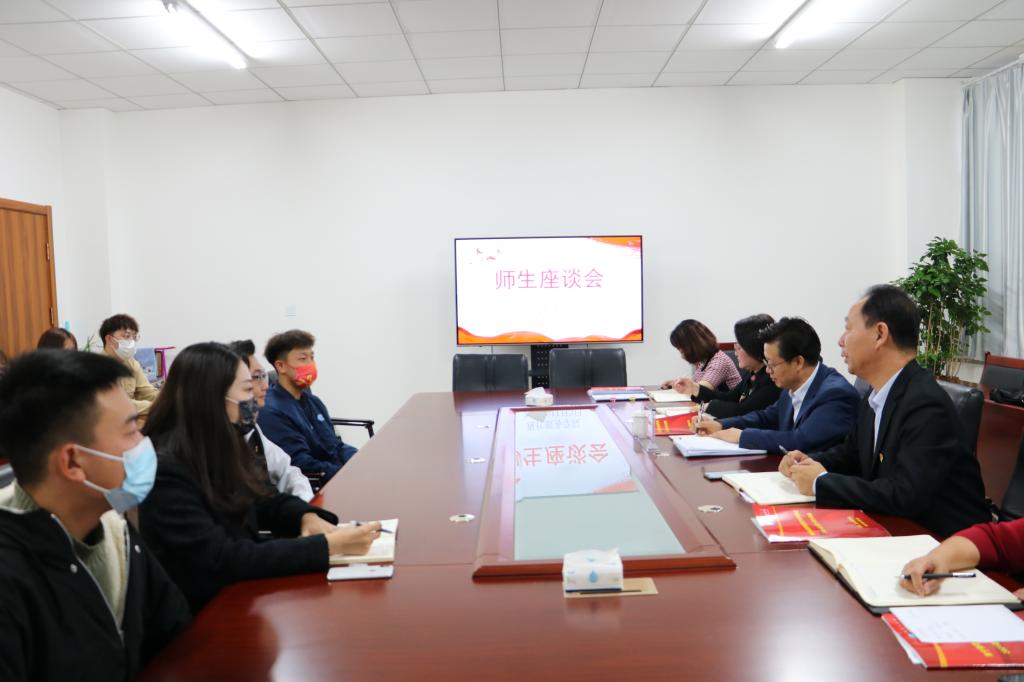 11月3日,beat365正版唯一官方网站党委书记朱玉东深入现代服务学院与师生代表进行座谈,现代服务学院院长王汉君主持会议。
