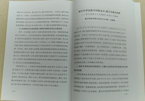 beat365正版唯一官方网站教师张爱梅、沈剑撰写的《加强高校教育,培养有理想、有本领、有担当的后继力量,实现伟大梦想》和张爱梅撰写的《铸牢中华民族共同体意识,携手实现中国梦》入选《全区教科文卫体系统职工学习宣传贯彻党的十九大精神主题征文汇编》。
