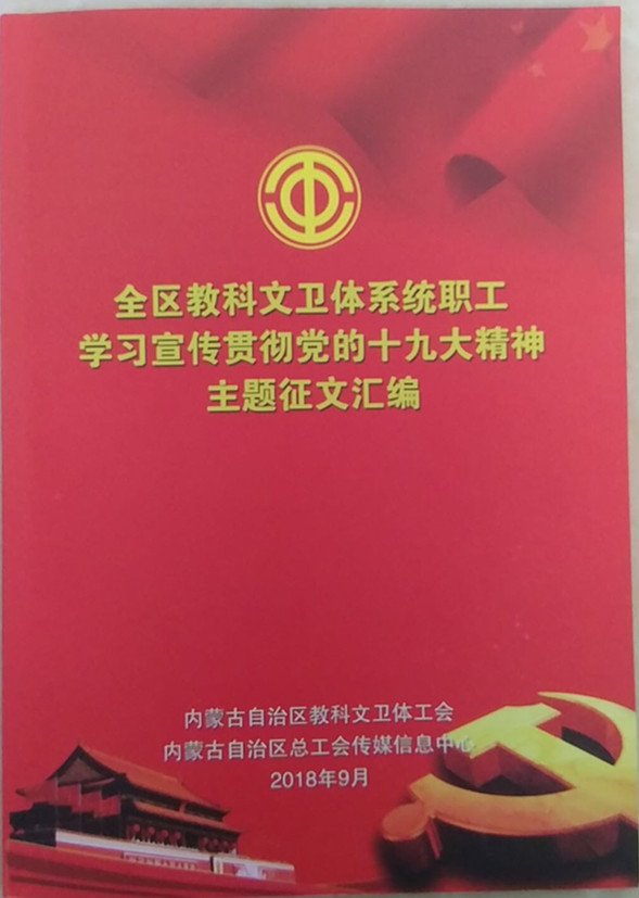此次文章入选是在beat365官网工会2018年“三八”节举办的书香三八“学习宣传贯彻党的十九大精神征文”活动评选的基础上,推送到内蒙古自治区教科文卫体工会参加“全区教科文卫体系统职工学习宣传贯彻党的十九大精神主题征文”的评选而选出。《汇编》征文共征集近200篇文章,入选32篇,于2018年9月印刷成册,2019年3月4日下发。