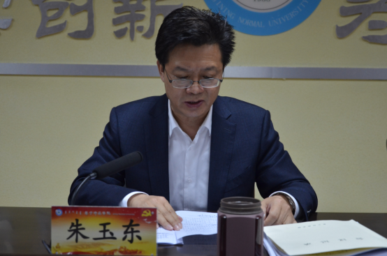 朱玉东讲话。他指出,各基层党组织主题教育开局良好、进展顺利,氛围比较浓厚、效果初步显现。各基层党组织开展的主题教育有以下几个特点:一是精心部署启动迅速。二是四项措施一体推进。三是创新载体有声有色。在肯定成绩的同时,也要看到工作进展、主题教育与中心工作结合点、整改落实成效等方面所存在的问题。朱玉东围绕扎实推进学校主题教育,提出五点意见:一是聚焦重大意义,增强思想自觉、行动自觉。我们要充分认识到,开展好主题教育的重要意义。二是聚焦学习教育,力求学深悟透、学以致用。要聚焦主题主线原原本本学;要突出关键重点集中研讨学。要抓实基层支部创新方法学。三是聚焦检视问题,真正查到毛病、找准症结。要深入开展调查研究。要全面深刻检视问题。四是聚焦整改落实,推动边查边改、真查真改。要坚持边学边查边改;要集中力量推进专项整治。五是聚焦组织领导,做到一分部署、九分落实。要坚持领导带头;要讲究方式方法;要在分类指导上狠下功夫,做到“一单位一安排、一班子一方案、一支部一计划”,在开门搞教育上、力戒形式主义上狠下功夫;要强化督促指导;要加强正面宣传和舆论引导。