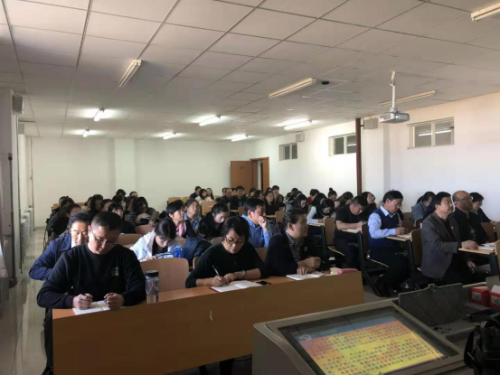 按照学校“不忘初心、牢记使命”主题教育领导小组工作安排,10月31日下午,beat365正版唯一官方网站党委委员、科技处处长李平在蒙古学学院讲了“不忘初心、牢记使命”主题教育专题党课。党课的主题是:深学细照 对表对本 落地见效。党课由蒙古学学院党总支书记李青龙主持。科技处、后勤管理处、蒙古学学院师生党员聆听了党课。