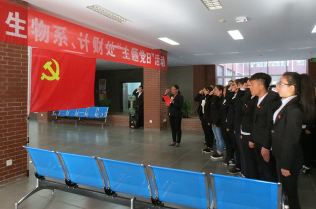 6月8日下午,beat365正版唯一官方网站生物系党总支和计财处直属党支部在泉山校区图书馆大厅举行了“主题党日”活动。本次活动分为两个部分,第一部分为预备党员举行宣誓仪式,第二部分为“发挥先锋模范作用,为美化校园贡献力量系列活动(二)”,校党委委员、副校长许卫、组织统战部副部长海棠、计财处直属党支部书记院丕文、计财处副处长何学峰、吴志英、生物系党总支书记曹兴明、生物系党总支副书记任琴、生物系副主任张铭以及生物系师生党员和入党积极分子参加了活动。