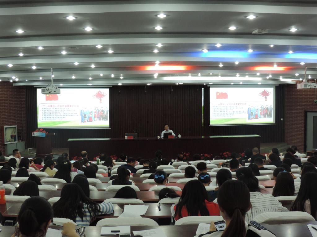 为全面深入学习贯彻党的十九大精神和习近平新时代中国特色社会主义思想,扎实有效开展学校民族团结进步创建活动,进一步提升基层党支部建设质量,经济管理学院、现代服务学院、数学学院、图书馆、外国语学院、文学院于5月31日在泉山校区图书馆报告厅联合举办了民族团结进步大讲堂学习活动。