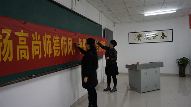 随后,全院教师在院党总支书记张妙珠的带领下在“弘扬高尚师德师风、争做‘四有’合格教师”横幅上进行了签名。
