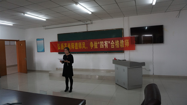孙霞围绕师德规范,对全体教师提出了具体要求:一、思想上与时俱进,坚持正确的政治方向,认真学习贯彻习近平新时代中国特色社会主义思想和十九大精神,学以致用,指导工作;二、热爱教育事业, 忠诚于党和人民的教育事业,全面贯彻党的教育方针,寓教育于教学中,落实立德树人根本任务,坚持“四个统一”;三、热爱学校,热爱教师集体,时刻维护学校学院声誉,团结互助育人;四、自觉遵守《高等学校教师职业道德规范》等教育法律法规,遵守学校规章制度,提高法治意识和纪律意识;五、严格遵守《beat365正版唯一官方网站教学工作规程》,认真钻研业务,备好、上好每一节课,努力提高专业素养和教学质量;六、热爱学生、严格要求学生,坚持一切为了学生,关心关爱学生成长,做学生的“四个引路人”;七、加强自身修养,严以律己,以身作则,为人师表。并希望全体教师严守“求实创新、为人师表”校训,弘扬“立德修身、教书育人”的教风,争做“有理想信念、有道德情操、有扎实学识、有仁爱之心”的“四有”好教师。