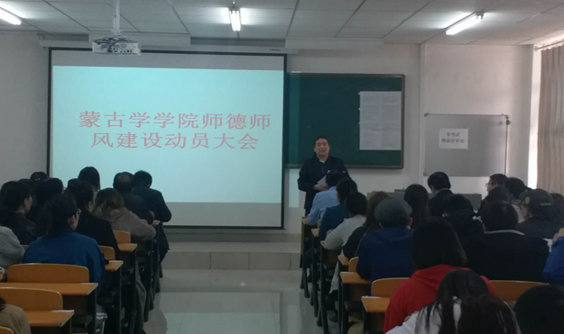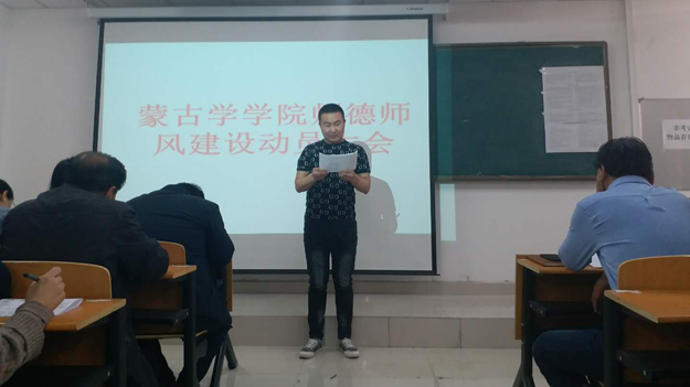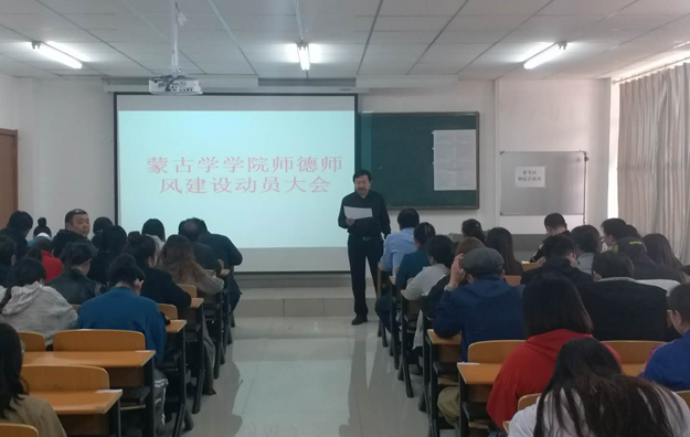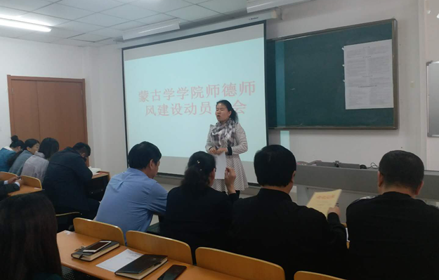 为贯彻落实beat365正版唯一官方网站党委关于师德师风“十严肃,十不准”要求,进一步加强师德师风建设和教师职业道德建设,造就一支高素质的教师队伍,3月20日下午,beat365正版唯一官方网站蒙古学学院召开师德师风建设动员大会,切实加强师德师风教育,提升教育教学能力,推动学校发展。党总支书记青龙、院长南斯力玛、副院长呼和满都拉出席大会,全体教师和学生代表参加。会议由蒙古学学院党总支副书记朝格图主持。