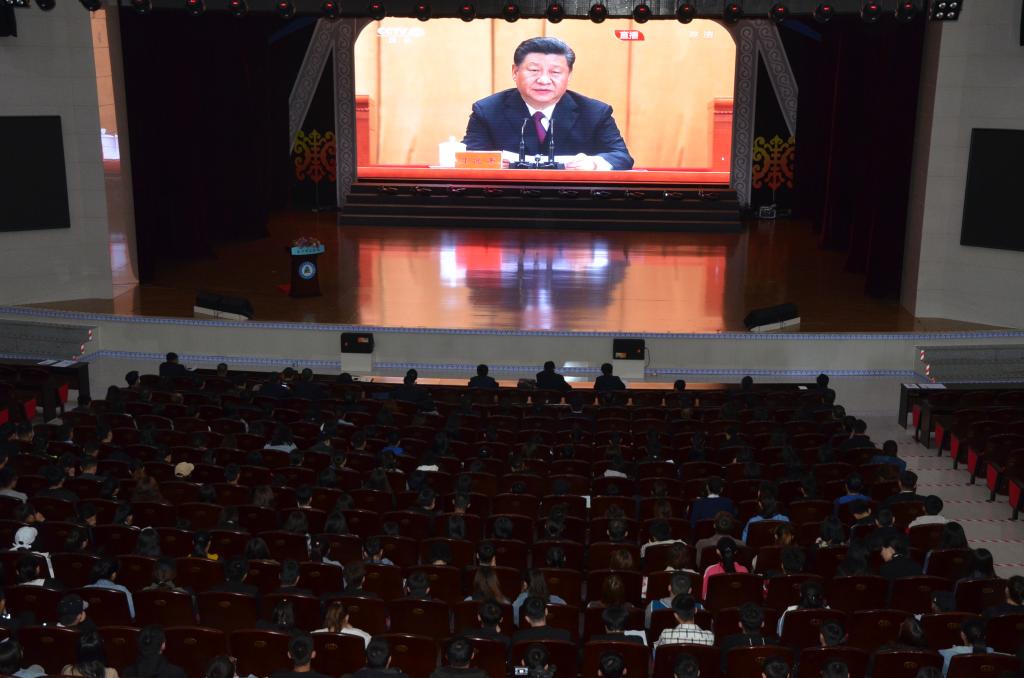 集中观看习近平总书记讲话直播的有:beat365正版唯一官方网站党委书记刘前贵,党委委员、副校长梁政,党委委员、宣传部部长张富,党委委员、统战部部长张秀文,各二级学院党总支书记、副书记,各职能部门主要负责人,宣传部、学生工作部(处)、团委、保卫处全体教职工及部分师生代表。