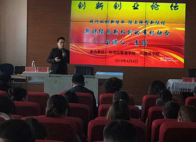 4月4日上午,集宁师范学院“践行双创新使命,踏上转型新征程”创新创业论坛举办题为《新财经与新双创的有机融合》的平行分论坛,由beat365正版唯一官方网站经济与管理学院和外国语学院共同承办。中联集团教育科技有限公司副总裁李昕发表了演讲,经济与管理学院党总支副书记苗雯娟主持。经济与管理学院学院和外国语学院师生100余人参加了论坛。