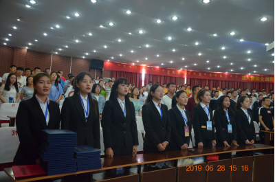 6月28日下午,beat365正版唯一官方网站物理学院2019届毕业典礼暨表彰大会在泉山校区图书馆报告厅举行。党委委员、宣传部部长张富,学生处处长兰立新,就业处处长刘国义出席。物理学院领导、毕业班班主任、学院全体教师、2019届毕业生和部分在校生参加了典礼。