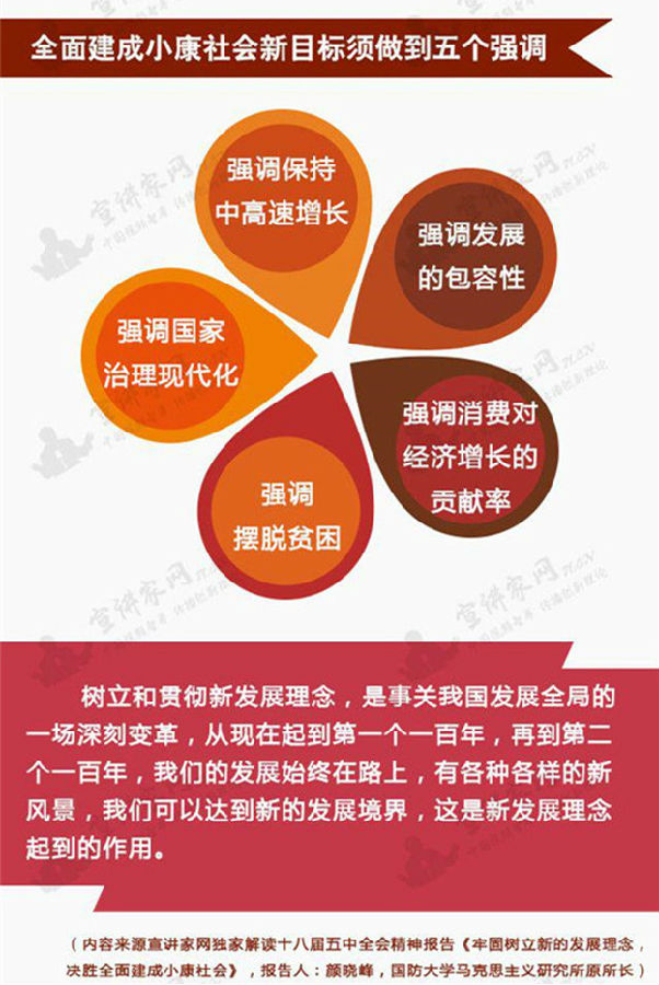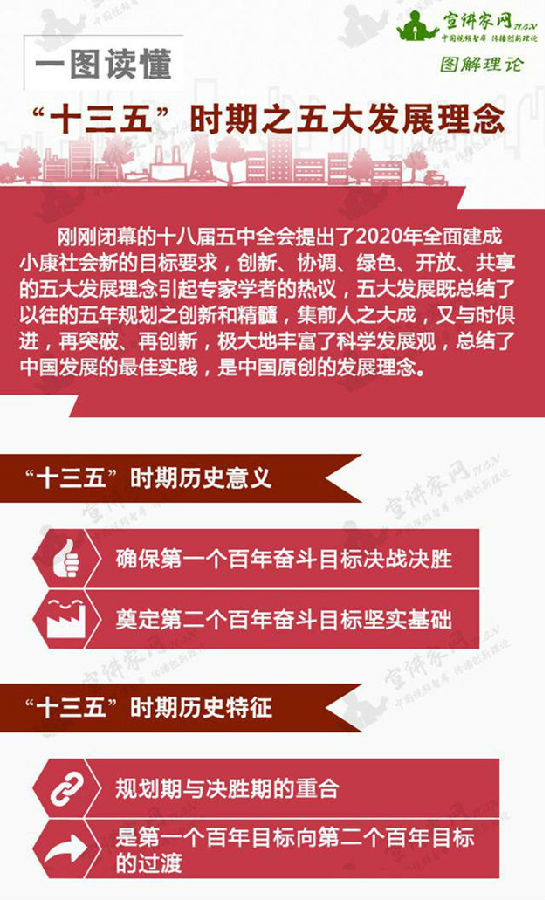 【编者按】党的十八届五中全会是在全面建成小康社会进入决胜阶段召开的一次十分重要的会议,是一次规划和开创中国未来发展的重要会议。全会审议通过的《中共中央关于制定国民经济和社会发展第十三个五年规划的建议》,明确提出了“十三五”时期我国发展的指导思想、基本原则、目标任务、基本理念、重大举措,描绘了我国经济社会发展的宏伟蓝图,是实现“两个一百年”奋斗目标第一个百年目标、全面建成小康社会的纲领性文件,是今后五年我国经济社会发展的行动指南。深入学习宣传贯彻好全会精神,对全面贯彻党的教育方针、落实立德树人根本任务,推动高等教育全面发展有十分重要的意义,是当前学校首要的政治任务。为了全面、准确、深入地学习宣传好全会精神,党委宣传部选编部分学习资料转载在【学习园地】中,以供我们在全面深化学校转型发展、谋划学校“十三五”、把beat365官网建设成为应用型师范大学中思考和借鉴。此次推荐的《“十三五”时期之五大发展理念》刊载于宣讲家网。