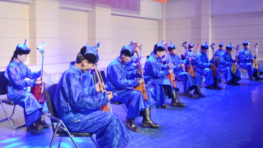 文艺演出在轻盈优美的《顶碗舞》拉开帷幕,《七月的草原》、《天边》等蒙古族传统民歌曲调悠扬,表演者们用清澈的嗓音深情传递蒙古人的坚韧、快乐与激情。经典曲目《万马奔腾》展现出了马头琴的无穷魅力,跌宕起伏的韵律时而高亢,时而幽怨,如怨如慕,如泣如诉……让人震撼的古筝独奏《忘秦川》,悠扬的曲调在会场回荡,独特的艺术形式充分展示草原文化的精神内涵。演出在《汗沁贝勒格》的旋律中落下帷幕。